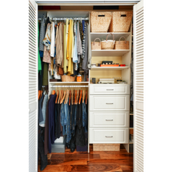 Closets are one of the most disorganized spaces in a home. It’s just so easy to throw the clothes, shoes, bags, boxing gloves into the closet and turn off the light or shut the door. However, an organized and functional closet helps keep the rest of the house organized. The best closet organization system starts with getting rid of clutter and creating specific space for each type of clothing and accessory. You want a closet that can be maintained over time. Regardless of the size of your closet, there are 3 main organization tips: efficient folding methods, utilizing previously unused space, and dedicated sections for certain items. Plus, a seasonal purge doesn’t hurt. Downsize your wardrobe, only keep the items that you wear, and rotate out seasonal clothing. Keep off-season clothing in a trunk or storage bin. Bins, baskets, boxes, rack dividers, and hooks are all great ways to organize your things. Keep your bedroom closets better organized and clutter-free, by moving items such as vacuums, camping gear, and suitcases to a better-suited area of your home. Utilize the space under your hanging items by adding a dresser or shelving unit. If you have a smaller space to work with, it might help to add a clothes rack to your bedroom instead of squishing everything into one space. Use wall space to hold smaller items, such as jewelry and accessories. Footwear takes up a ton of space, try using a shoe stacking bin or an over-the-door shoe rack to keep things more organized and tidier.